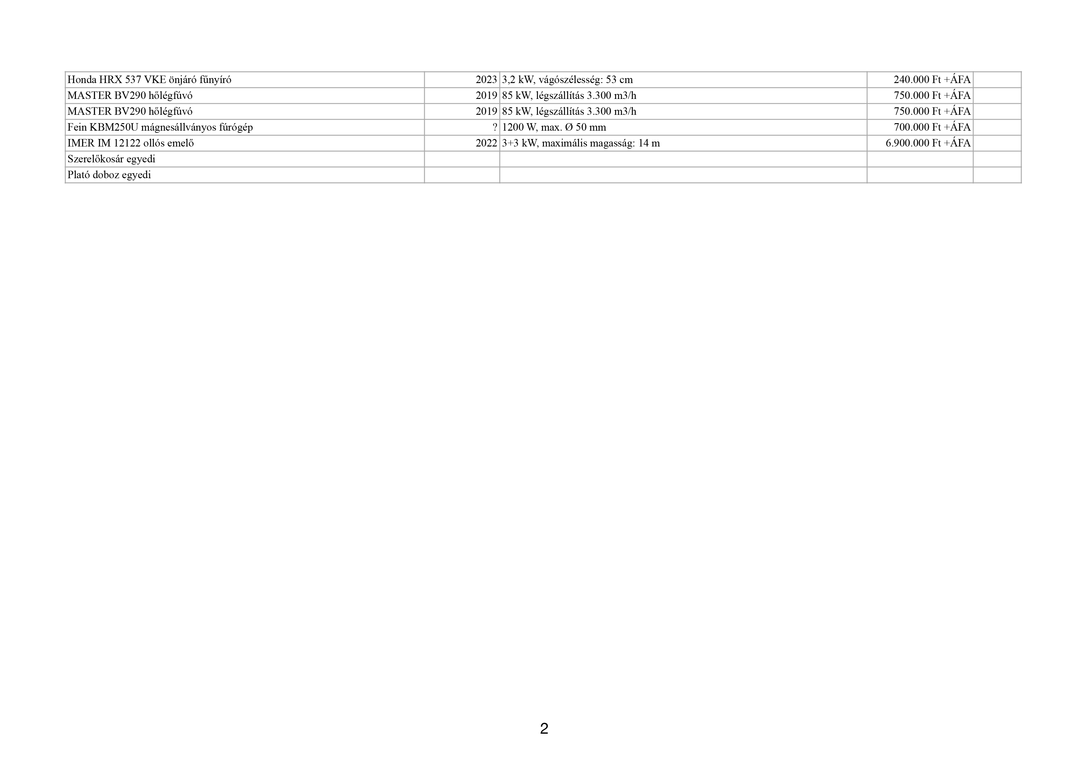 Tömeg (alapgép+toló+kábelköteg, kb.): 152 kg